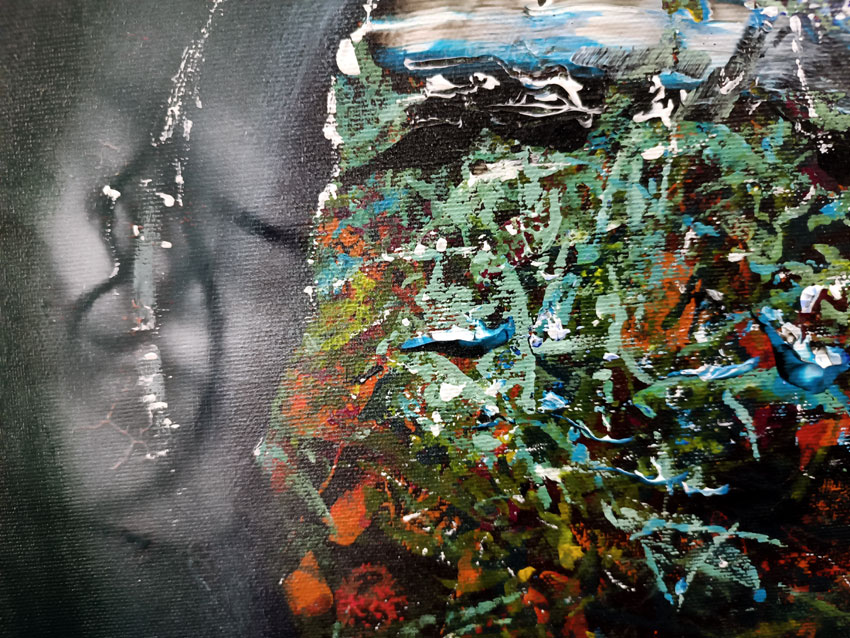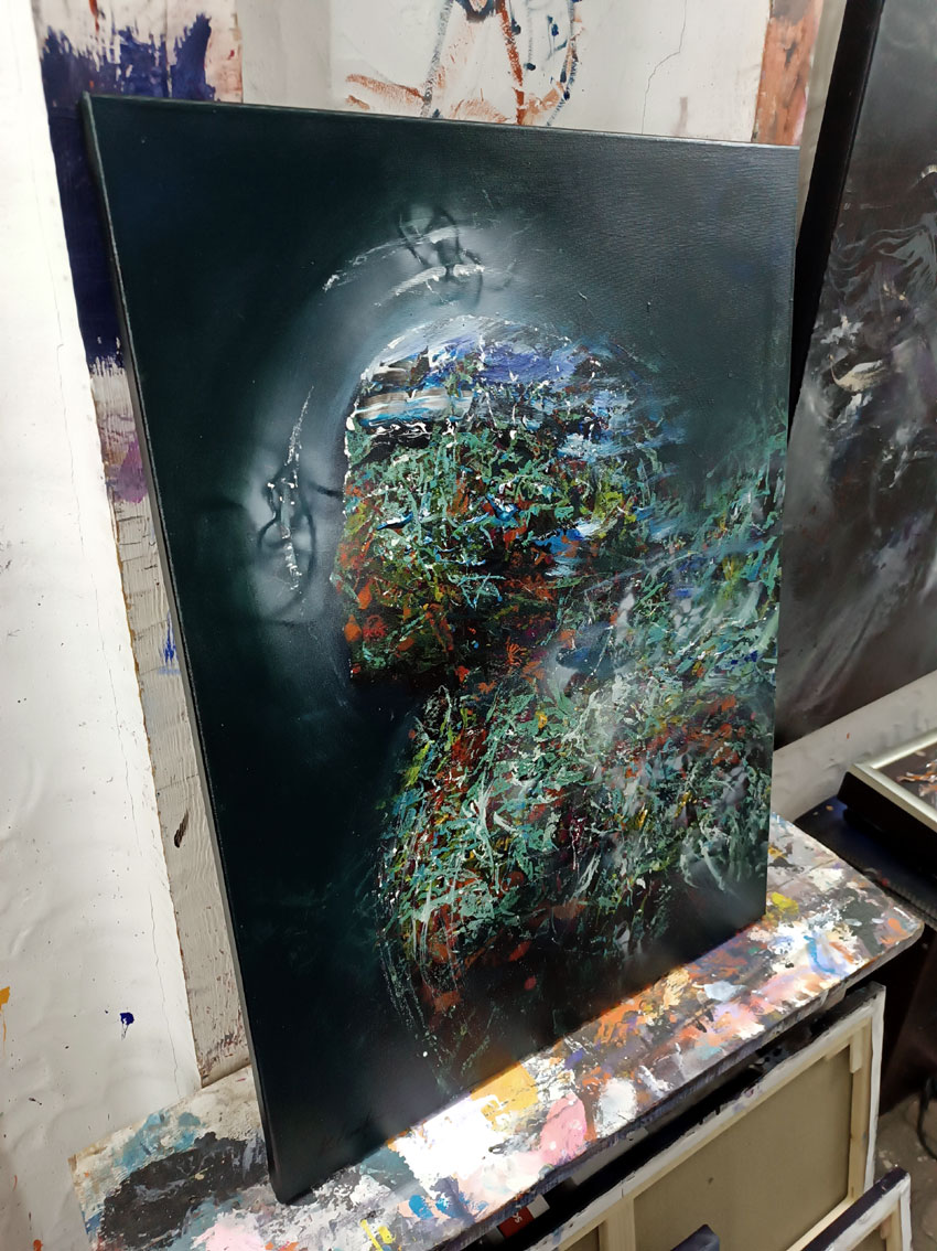 - acrylic painting and spray paints on canvas stretched on wooden chassis