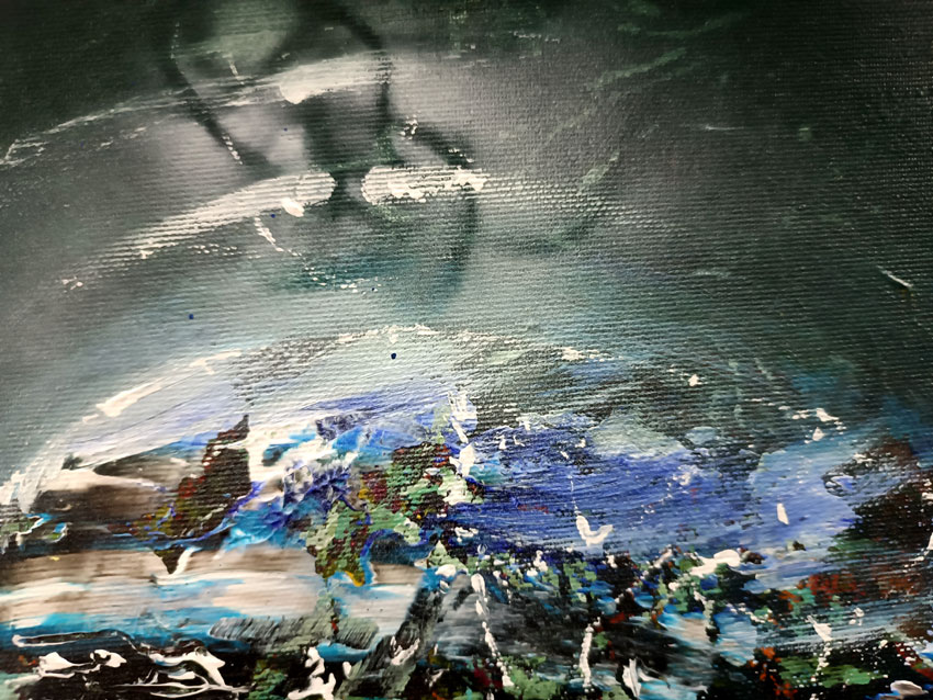 This painting, Angel Waiting, unfolds as an intricate dance of abstraction and metaphysical insight. Inspired by the fading echoes of old Orthodox mural paintings, the artist imbues the canvas with a deep reverence for the sacred, yet he refuses to bow to the strictures of tradition. Instead, with a philosopher’s mind and a physicist’s curiosity, Kloska reinvents the angel, crafting a figure that exists simultaneously in the realms of the real and the imagined.