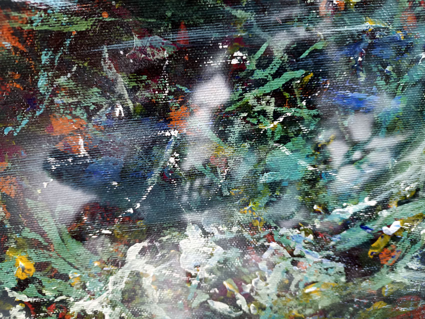 A master of controlling contrasts between light and shadow, Kloska weaves luminosity into the depths of darkness, creating a radiant tension that brings the angel to life. His subtle ability to extract, through gestural strokes and vivid colors, a fantastical profile of a messenger is unparalleled—a messenger who bridges the artist’s innermost self with the infinite Creator. The transitions between colors are so delicate and fluid in reality that no photograph can truly capture the revelation of standing before the painting. To admire it in person is to witness an emotional and spiritual unveiling that no image can adequately convey.