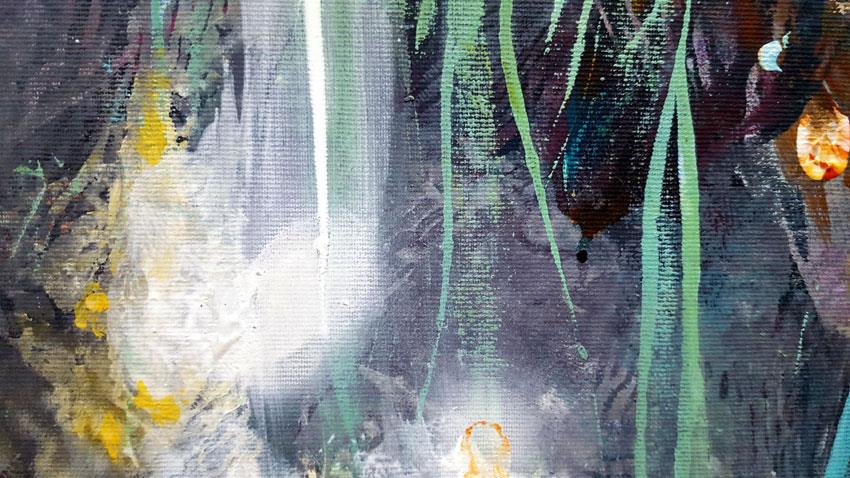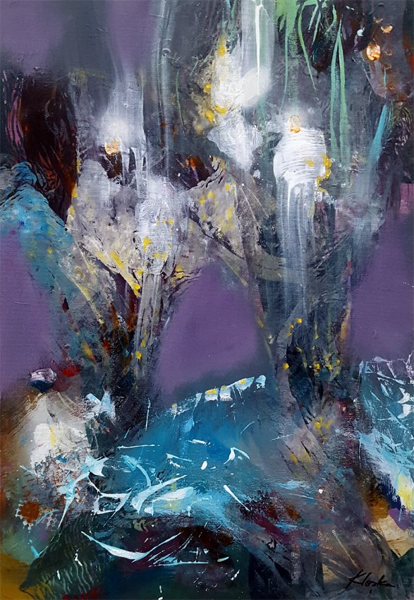 Tehnique:   acrylic painting on stretched canvas / borders are painted dark purple / READY TO HANG !