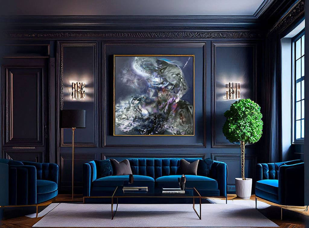 - The size of the painting is 120 x 120 cm and is ready to hang, varnished to protect the colors in time.