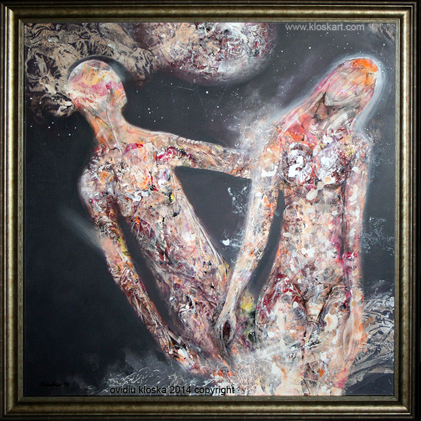 ORDER A CANVAS PRINT“Beginning in July 2014, this series of pictorial compositions idea centers on ancestral couple, primarily with a She and a He a nearby oneiric almost devoid of bodily harm, in a space crespuscular somewhere boundary tangible universe. The compositions have a special status and are like cosmic dust permeated the beginning, which brings the deformed areas and volatile energy glimpses of a luminary early, fine movements of stellar particles seem to outline the only hint of movement. Pictorial dichotomous splits in cold intangible cosmic space around the couple and seem to wear body imanentelor dermis of the stars Lost eroded. The atmosphere is set in a time zero in weightlessness forgotten somewhere in nothingness untold. The achievement of the two and they bring no limit composition figurations, in presence unlikely his hand, searching to amfofial body, dressed in a kaleidoscopic color, betrays a subtle desire to close “