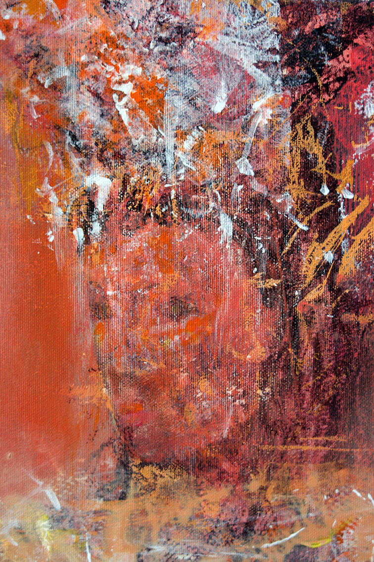 Tehnique: large acrylic painting on canvas stretched over wooden chassis / edges are painted dark orange / ready to be exhibited