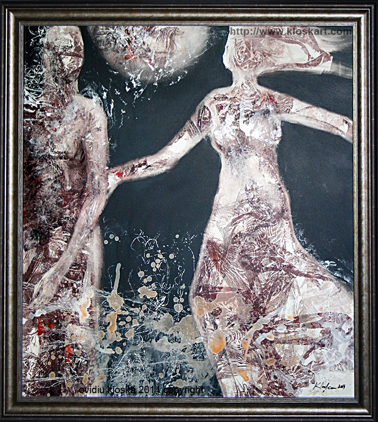 ORDER A CANVAS PRINT“Beginning in July 2014, this series of pictorial compositions idea centers on ancestral couple, primarily with a She and a He a nearby oneiric almost devoid of bodily harm, in a space crespuscular somewhere boundary tangible universe. The compositions have a special status and are like cosmic dust permeated the beginning, which brings the deformed areas and volatile energy glimpses of a luminary early, fine movements of stellar particles seem to outline the only hint of movement. Pictorial dichotomous splits in cold intangible cosmic space around the couple and seem to wear body imanentelor dermis of the stars Lost eroded. The atmosphere is set in a time zero in weightlessness forgotten somewhere in nothingness untold. The achievement of the two and they bring no limit composition figurations, in presence unlikely his hand, searching to amfofial body, dressed in a kaleidoscopic color, betrays a subtle desire to close “