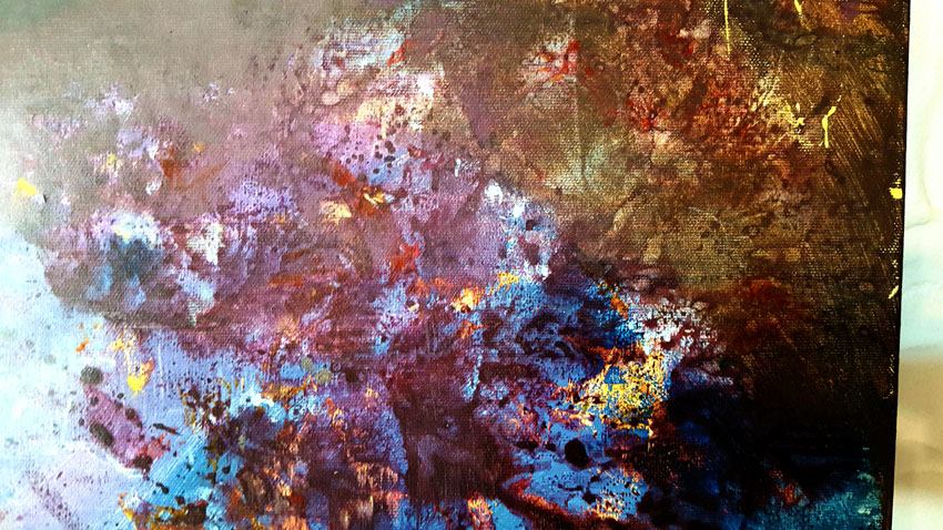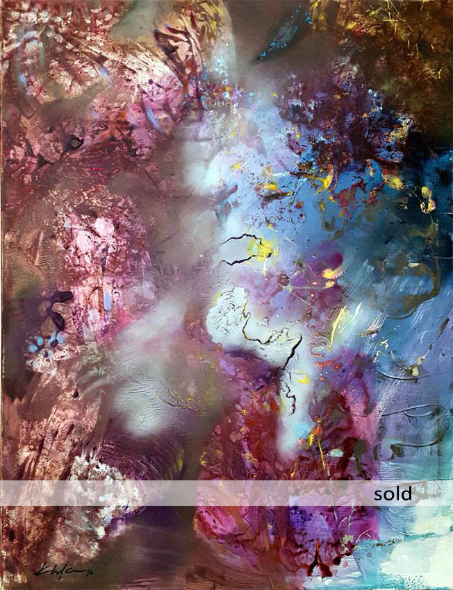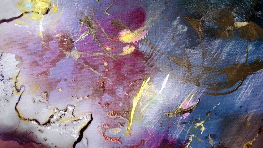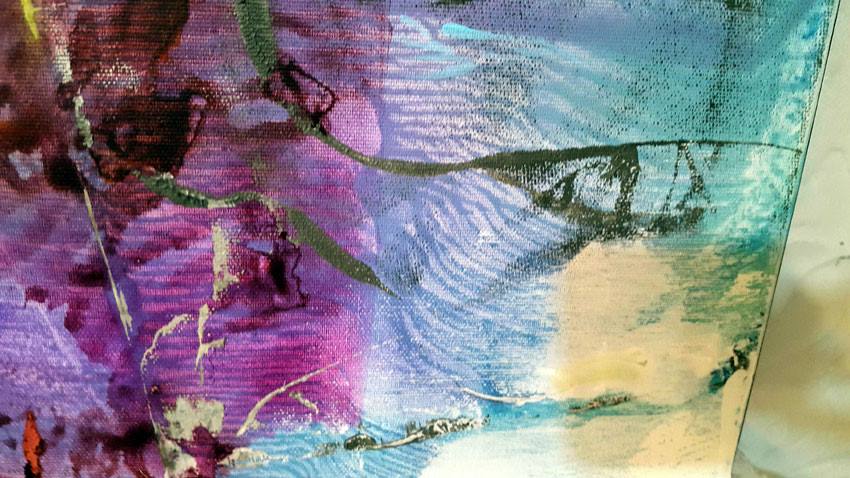 Tehnique:   large acrylic painting on stretched canvas / borders are painted dark purple / READY TO HANG