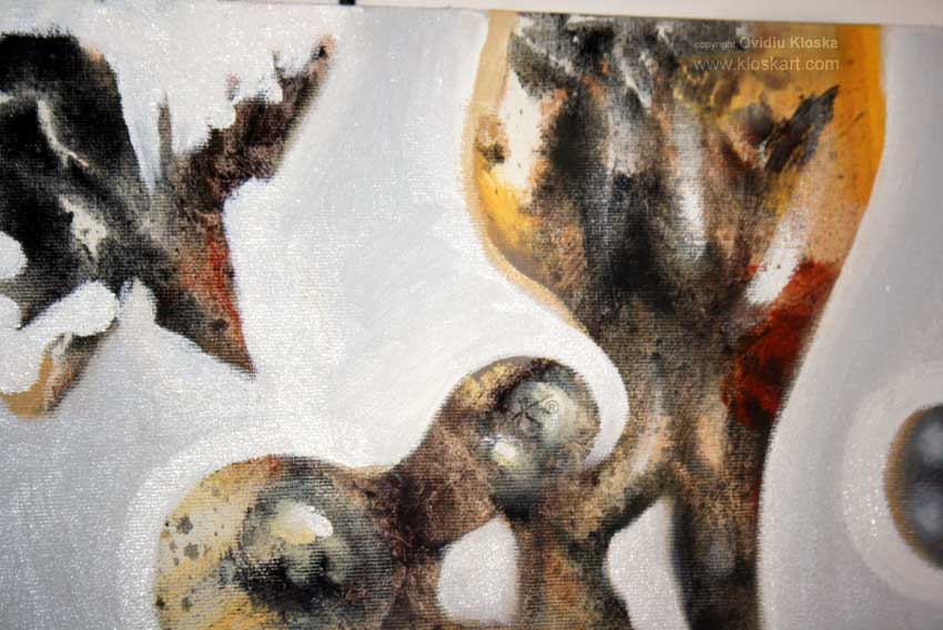 This series of artworks refers to the metaphysical approach to space populated by a pot with flowers, a near seen like a section of a personal temporal eternity, where the vegetative elements are transfigured into the metaphysical, transcendent .Thus, at the limit figuration, the immanents of the light becames oniric reflections and transparents, the flower shape became sphere, within which persist the traces of the pass, of the wear, the cyclicity. The series title, although apparently suggestive, is not refering to the absurdity and anguish prosaic present in Kafka’s universe, but rather its starts from the idea of freezing of the personal physical time, by a simple meditative exercise of pure contemplation of the close realities transformed by the passing of time. For me, as an artist, the still life is a perfect excuse to create a vibrant game between the idea of the volatility and the perennial of the world that we perceive around us, and the essence of the human spirit: the conscience. My “flowers” are subtle expressions of a meta-reality, where the viewer is invited to meditation, to exercise his spirit, to discover that energy, that forsure we all have it inside us, that resonates with the silence of the begining of begining.