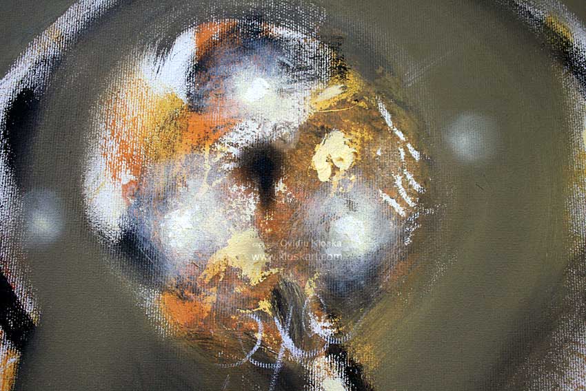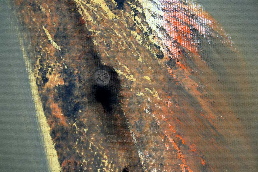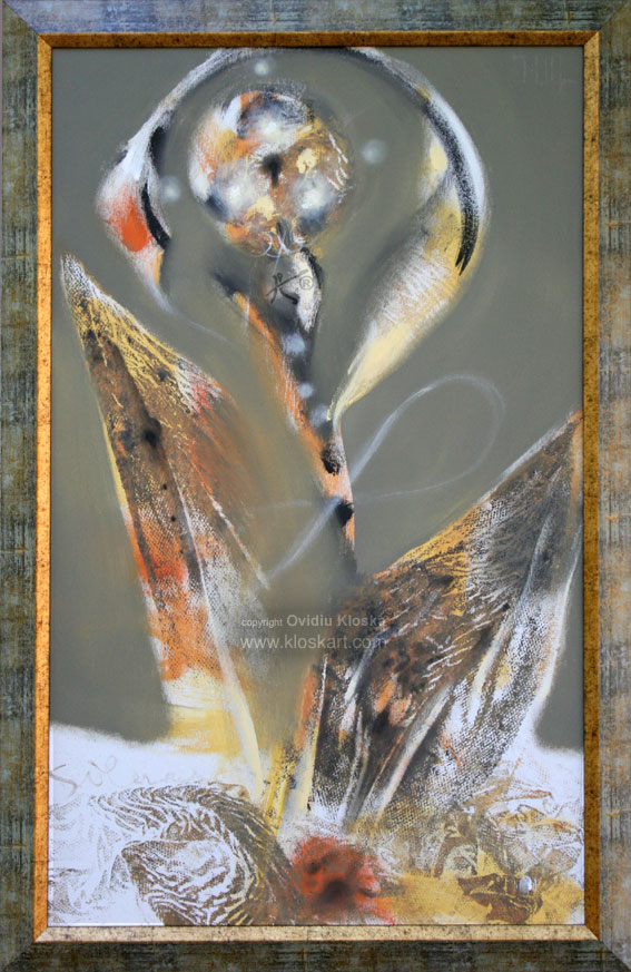 This series of artworks refers to the metaphysical approach to space populated by a pot with flowers, a near seen like a section of a personal temporal eternity, where the vegetative elements are transfigured into the metaphysical, transcendent .Thus, at the limit figuration, the immanents of the light becames oniric reflections and transparents, the flower shape became sphere, within which persist the traces of the pass, of the wear, the cyclicity. The series title, although apparently suggestive, is not refering to the absurdity and anguish prosaic present in Kafka’s universe, but rather its starts from the idea of freezing of the personal physical time, by a simple meditative exercise of pure contemplation of the close realities transformed by the passing of time. For me, as an artist, the still life is a perfect excuse to create a vibrant game between the idea of the volatility and the perennial of the world that we perceive around us, and the essence of the human spirit: the conscience. My “flowers” are subtle expressions of a meta-reality, where the viewer is invited to meditation, to exercise his spirit, to discover that energy, that forsure we all have it inside us, that resonates with the silence of the begining of begining.