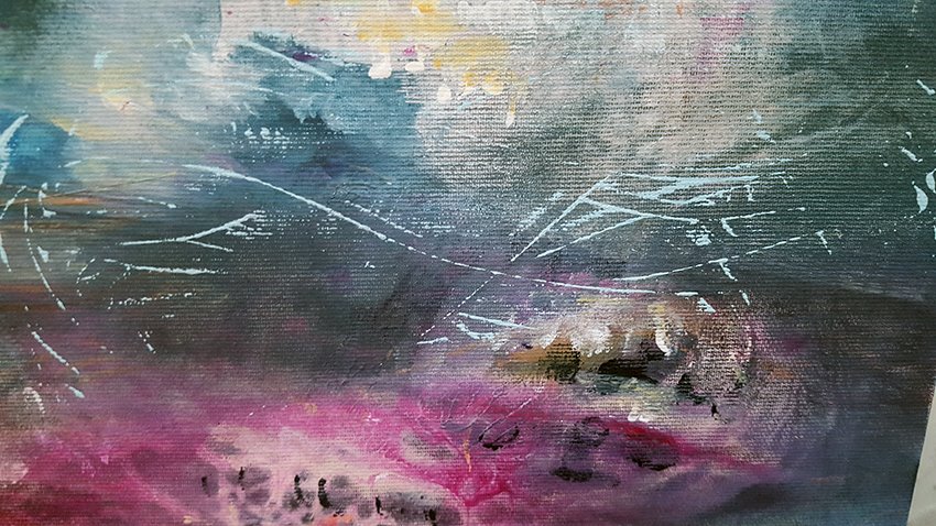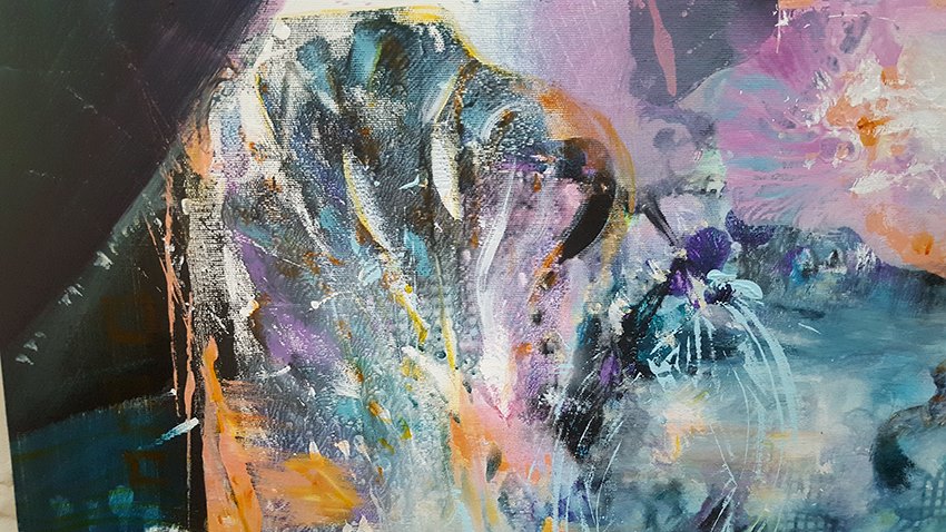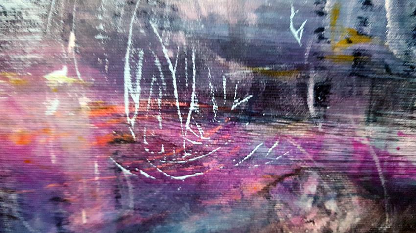 Tehnique: acrylic painting on stretched canvas / borders are painted dark purple / READY TO HANG !