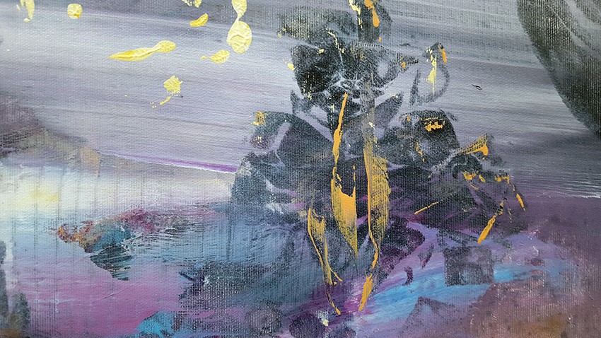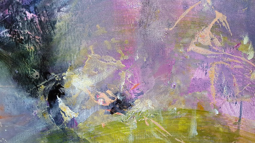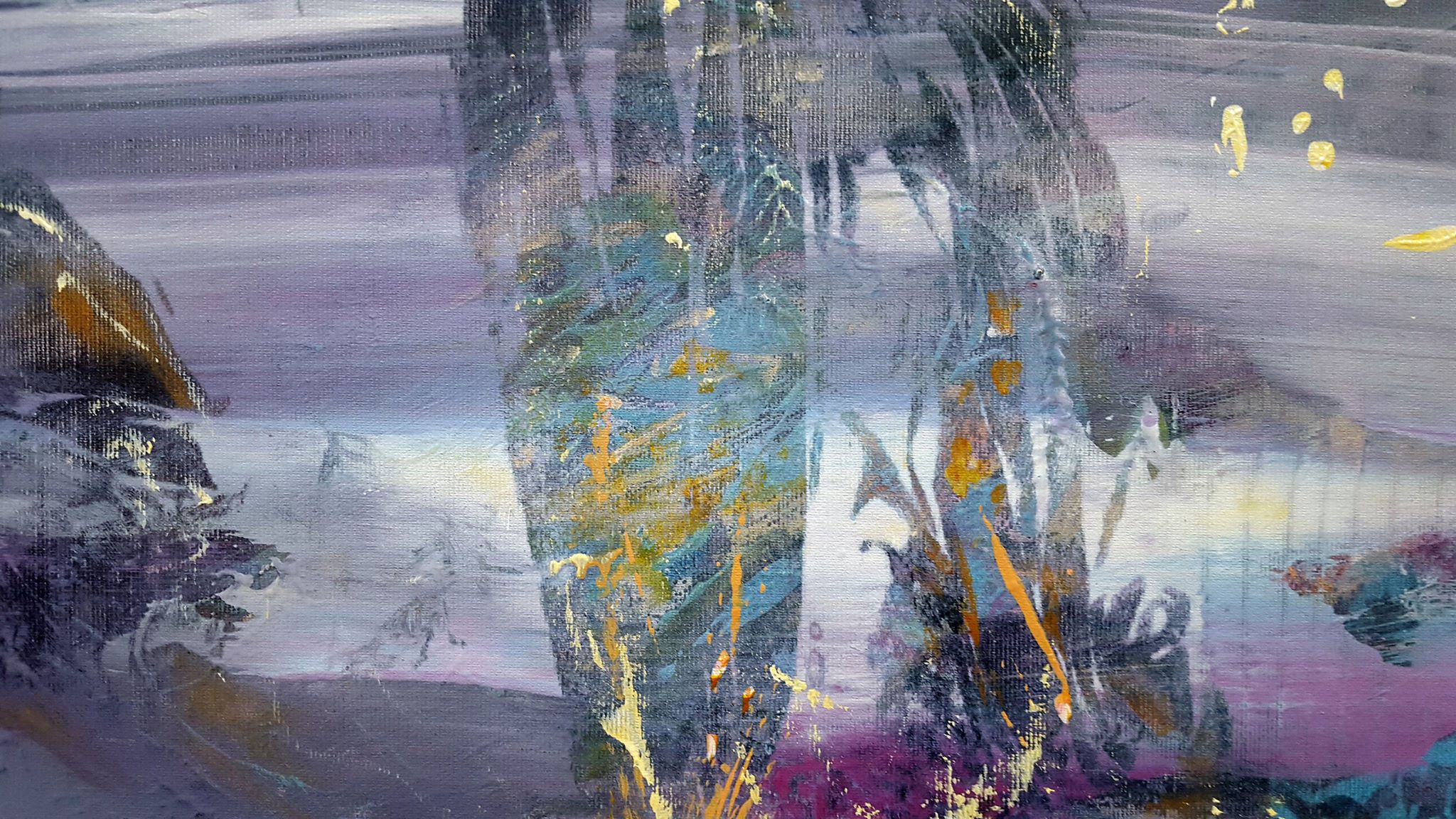Tehnique:   acrylic painting on stretched canvas / borders are painted dark purple / READY TO HANG