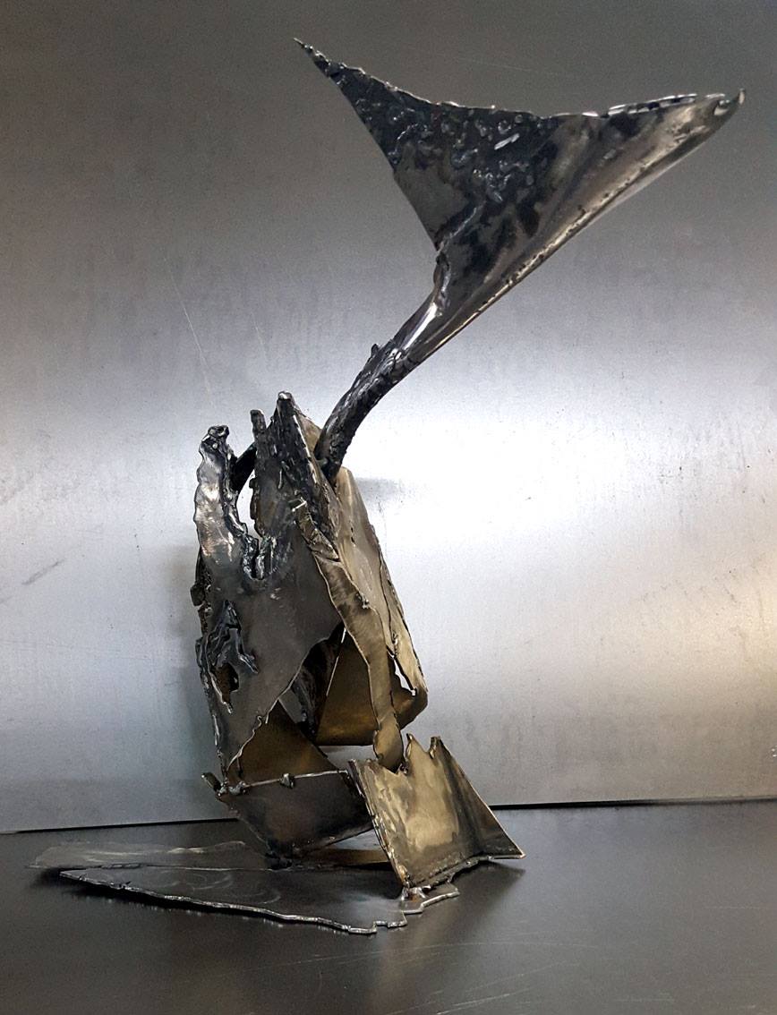 Brutalist oneiric deconstructivist original metal sculpture by romanian master OVIDIU KLOSKA