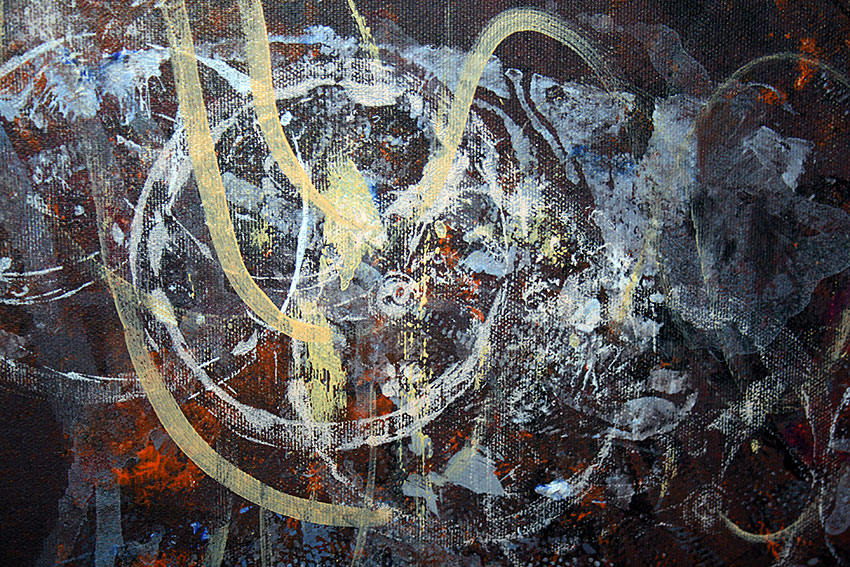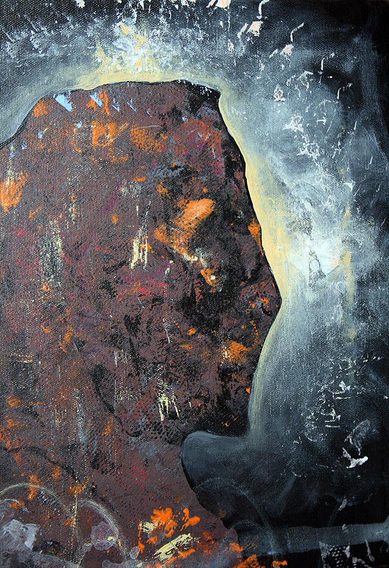 Tehnique: acrylic on canvas stretched over wooden chassis / edges are painted dark so can be dysplayed in this state