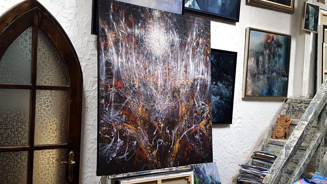 Tehnique: huge acrylic on stretched canvas / edges are painted dark / ready to hang