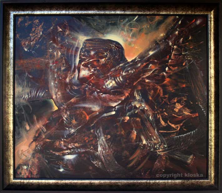 Tehnique: oil on canvas stretched over wooden chassis with ramin wooden frame with silver leaf